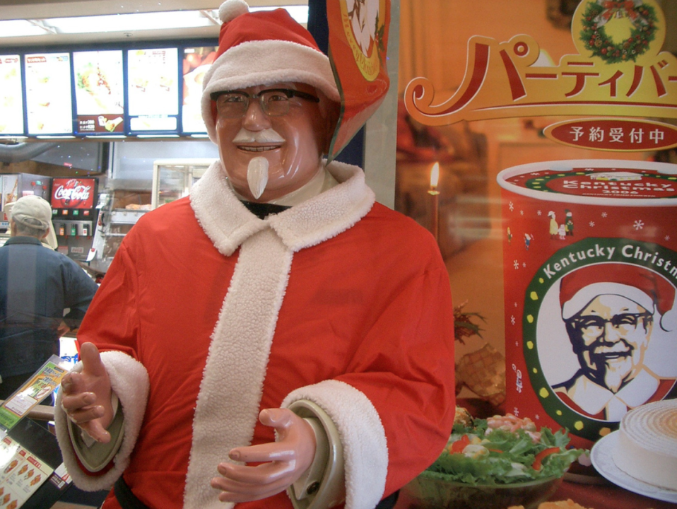 - Japan: Although Christmas is not a national holiday in Japan, it doesn’t stop the Japanese from celebrating it with some fried chicken. KFC ran the first Christmas campaign in Japan back in 1974, and since then, it has become something of a Christmas tradition.